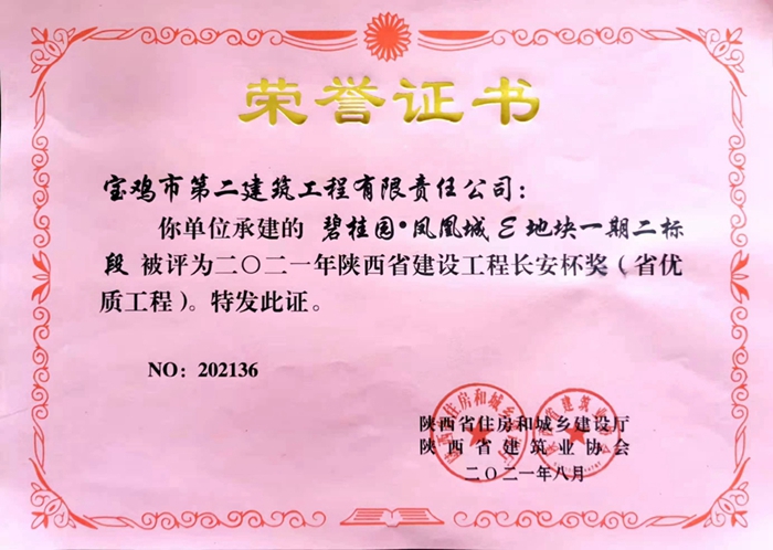 2021年陜西省建設(shè)工程長(zhǎng)安杯獎(jiǎng)(碧桂園?鳳凰城E地塊一期二標(biāo)段)
