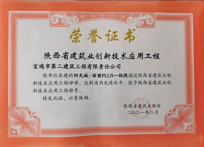 2021年陜西省建筑業(yè)創(chuàng)新技術應用工程(陽光城 ? 麗茲PLUS一標段)