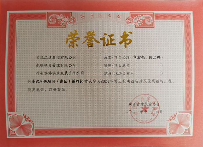 2021年度陜西省建筑優(yōu)質(zhì)結(jié)構(gòu)工程(秦漢和苑項(xiàng)目(東區(qū))第四批)