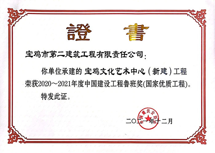?2020~2021?年度中國建設(shè)工程魯班獎(jiǎng)(寶雞文化藝術(shù)中心(新建)工程)