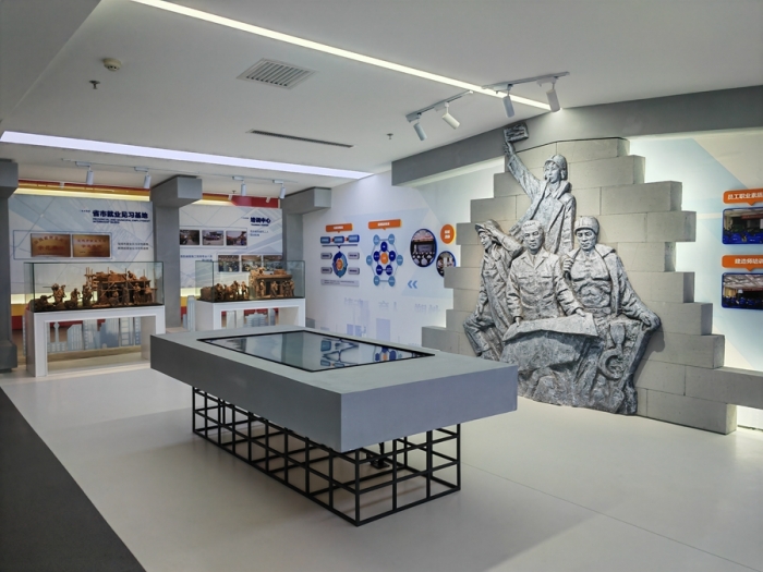企業(yè)展覽館總面積516㎡,共分為四個(gè)展示單元,分別是:第一單元平地起高樓,主要展示集團(tuán)公司歷史沿革;第二單元風(fēng)雨筑輝煌,主要展示集團(tuán)公司壯闊征程;第三單元黨建強(qiáng)引領(lǐng),主要展示黨建、企業(yè)文化;第四單元公司榮譽(yù)展示;通過(guò)實(shí)物、展板、沙盤(pán)、模型、視屏、雕塑等表現(xiàn)手法,以圖、文、影、聲并茂的形式全方位呈現(xiàn)集團(tuán)公司走過(guò)的艱辛之路、創(chuàng)新之路、豪邁之路。