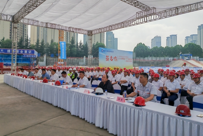 集團公司黨委副書記、總經(jīng)理楊江平,副總經(jīng)理、總會計師嚴海軍,副總經(jīng)理申小龍出席儀式。集團公司總部相關部門,寶雞片區(qū)各項目部負責人、專職安全管理人員及現(xiàn)場施工人員共計150余人參加了本次活動,儀式由副總工程師、工程管理部經(jīng)理郭為群主持。