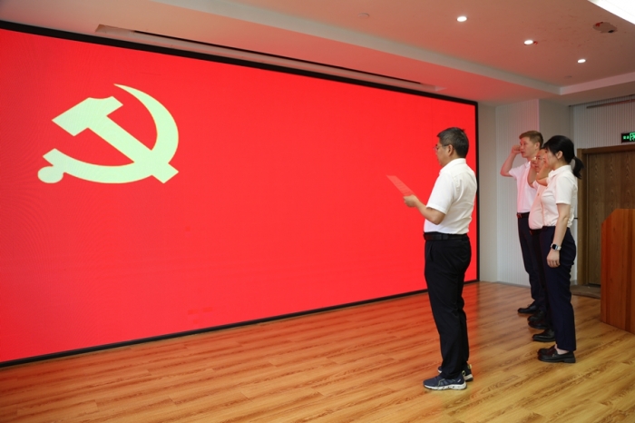 黨委副書記、監(jiān)事長沈為民帶領(lǐng)預(yù)備黨員入黨宣誓;