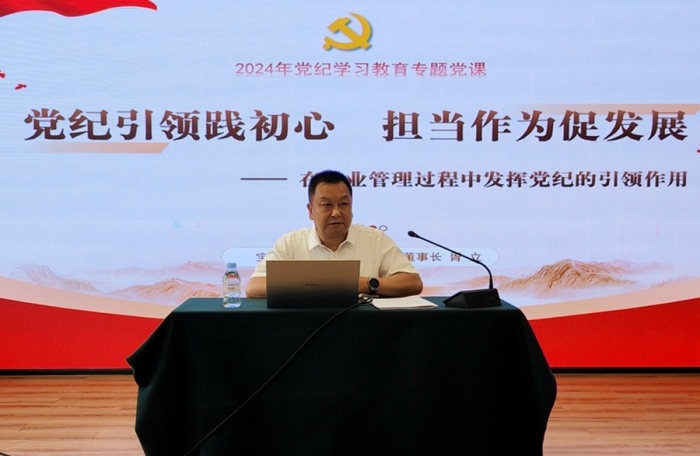 黨委書記、董事長胥立講授題為《黨紀(jì)引領(lǐng)踐初心 擔(dān)當(dāng)作為促發(fā)展》的黨紀(jì)學(xué)習(xí)教育專題黨課。他從認(rèn)識黨紀(jì)的重要性、深學(xué)細悟“六項紀(jì)律”、加強黨紀(jì)建設(shè)的要求、在管理中貫徹黨紀(jì)的思考和實踐四個方面進行了講解,并與現(xiàn)場人員進行了互動交流。