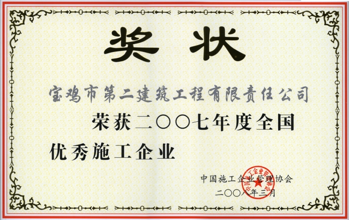 2007年全國優(yōu)秀施工企業(yè)