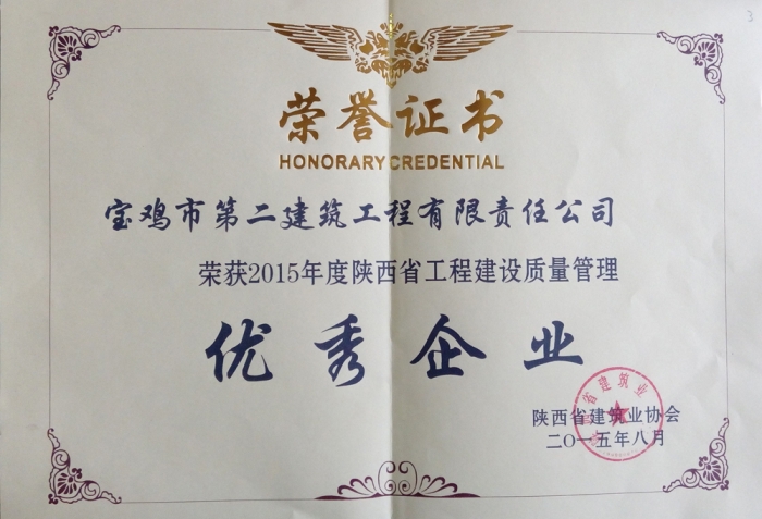 2015年度陜西省工程建設質(zhì)量管理優(yōu)秀企業(yè)